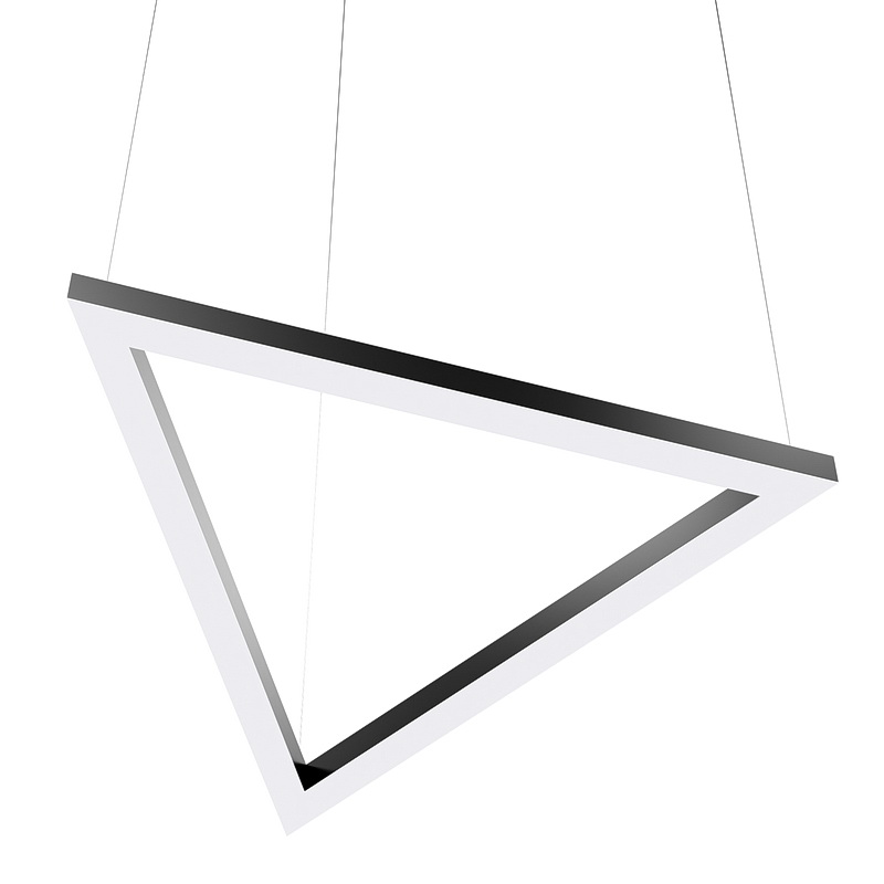 Корпус светильника треугольной формы может быть выполнен в черном, белом и сером цветах. Цветовая температура на выбор: теплый цвет (3000К), нейтральный (4000К) или холодный (6500К). Материал корпуса металл, размеры на выбор заказчика. Тип крепления: подвесной или накладной монтаж.